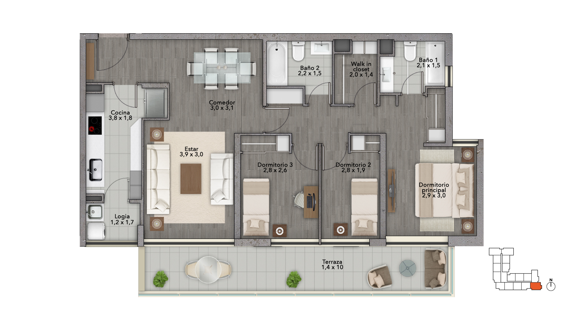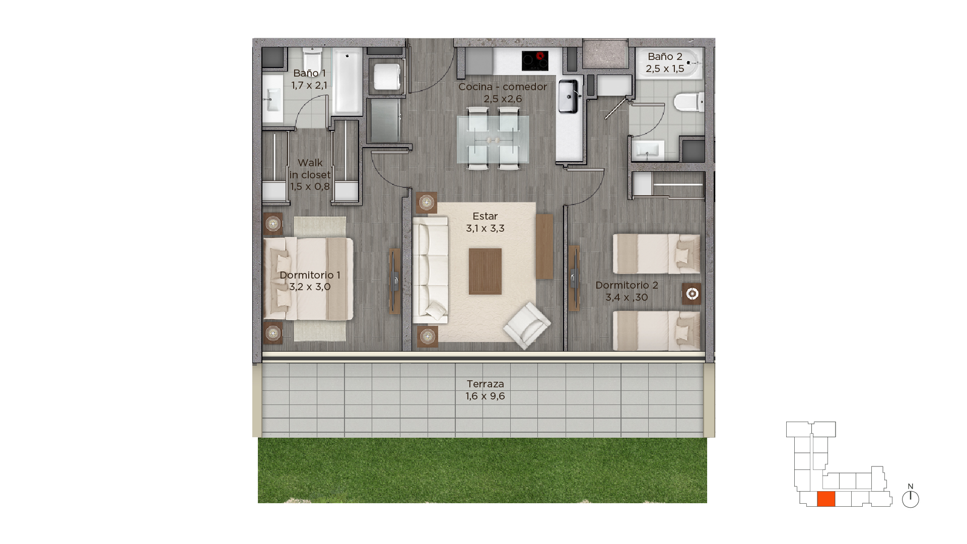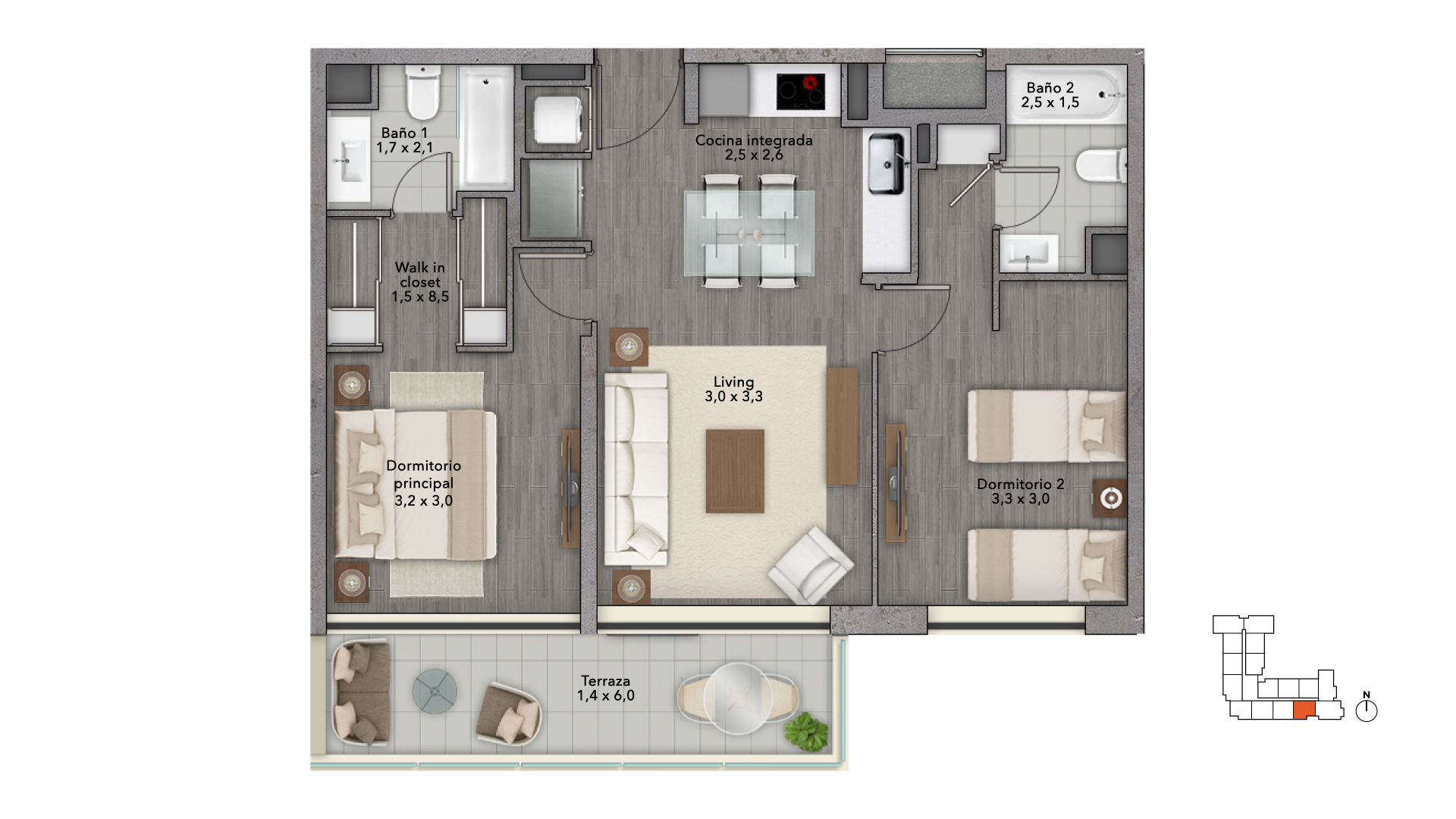 • Departamento con acceso terraza mirador de 22 y 26 m2 con quincho