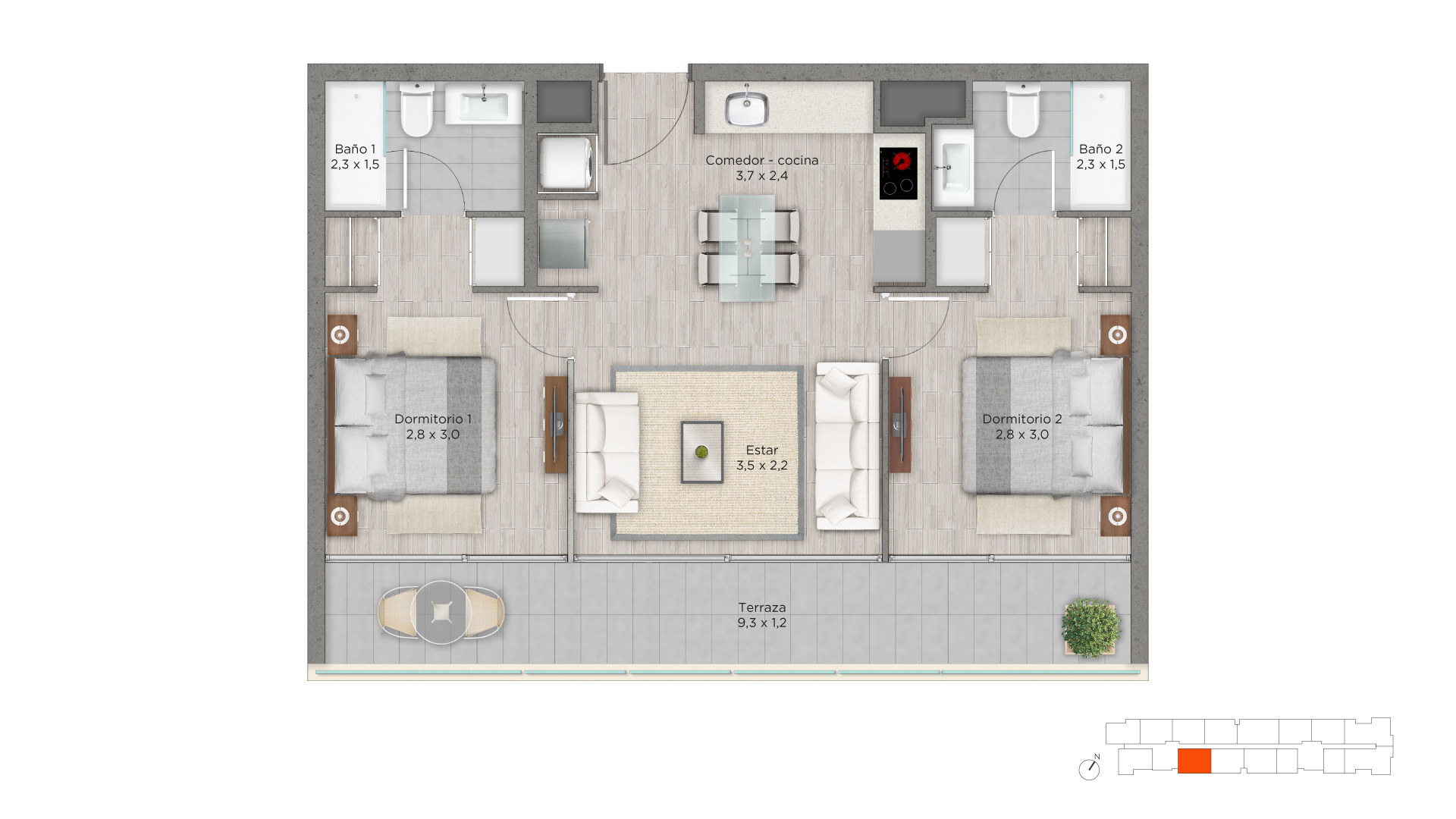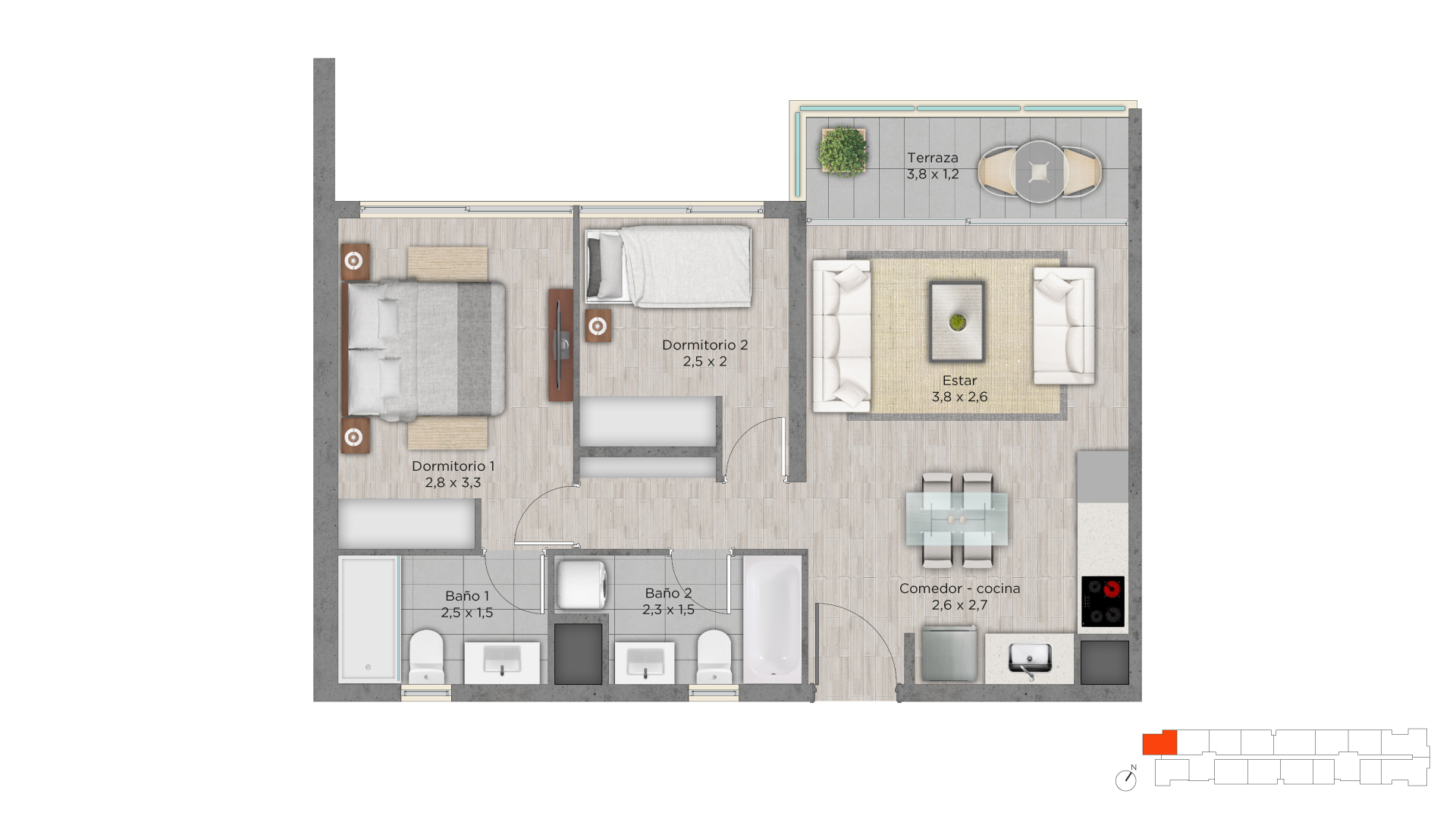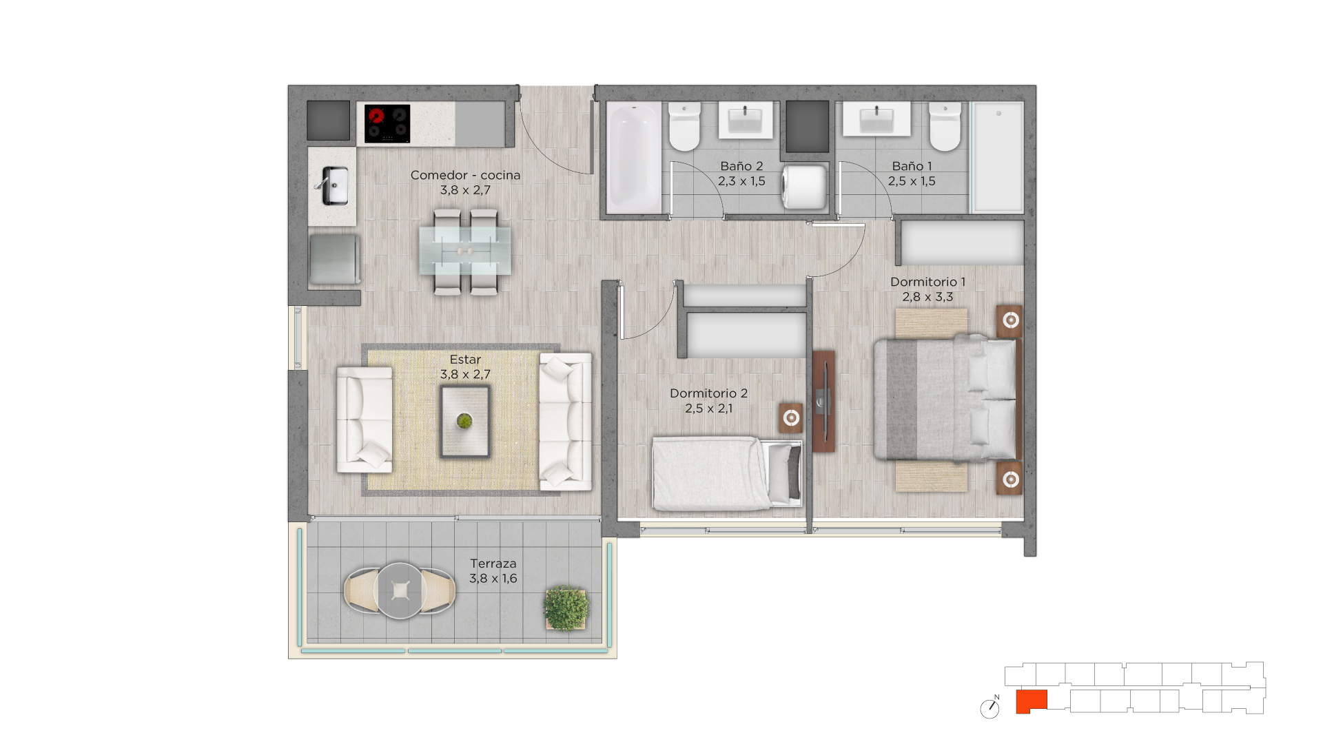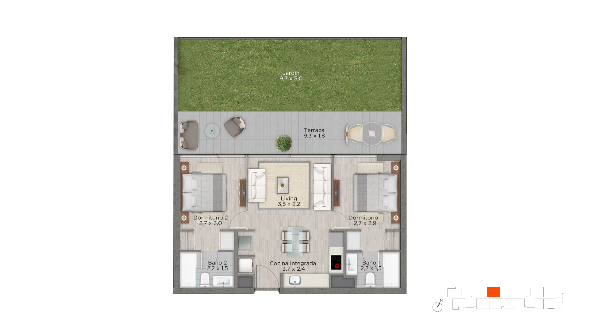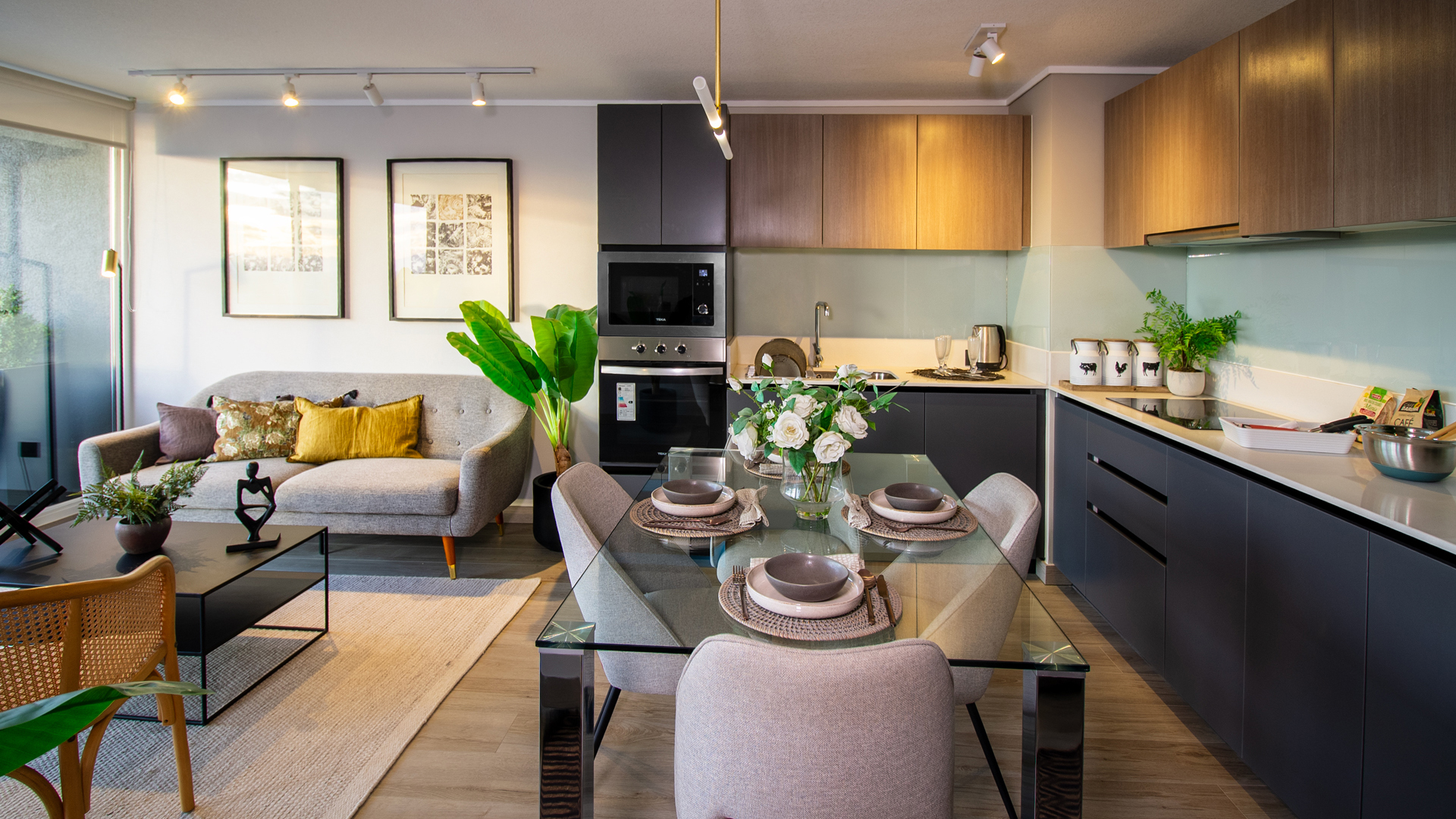 • Departamentos de 1 y 2 dormitorios con cocina integrada